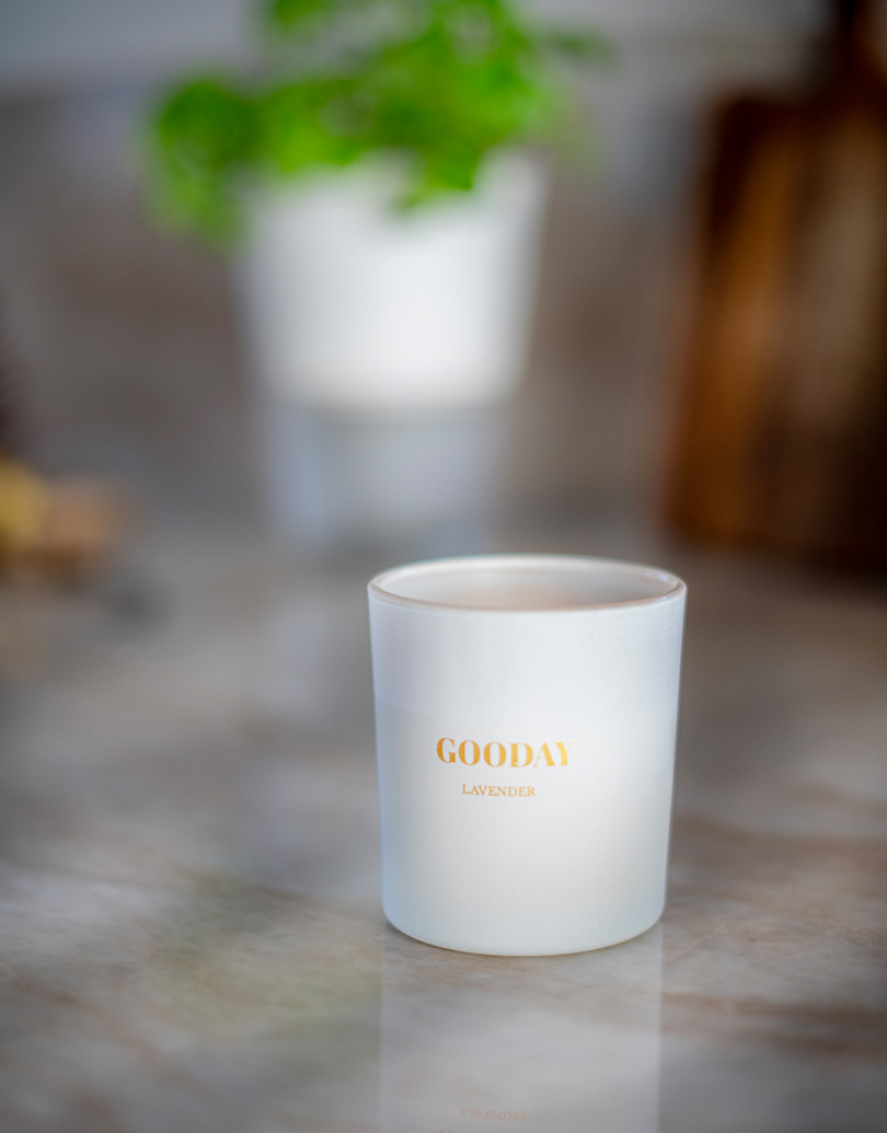 Upplev en stunds avkoppling med vårt doftljus, vars lugnande lavendeldoft bringar harmoni till ditt utrymme.